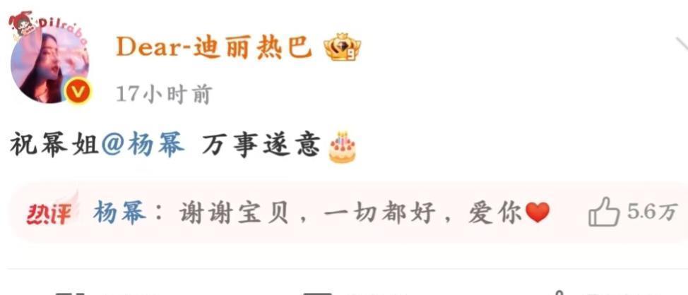 但与杨幂关系要好的热巴,如故如期为对方奉上了祝愿。