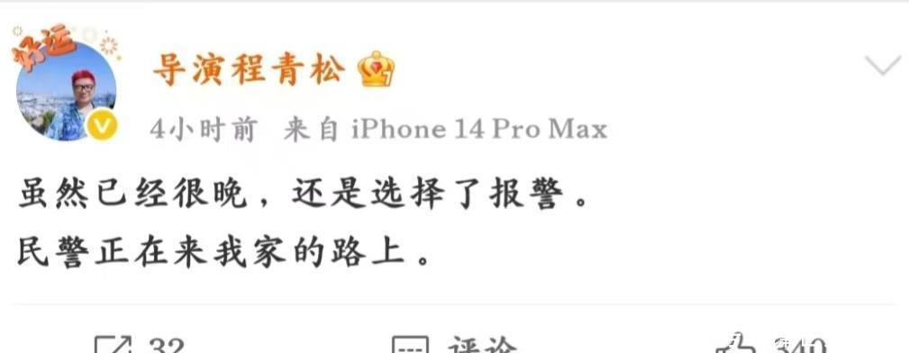 尽管这仅仅一个不知真假的料到,可如故有一位名叫程青松的导演,无辜地受到了牵缠。