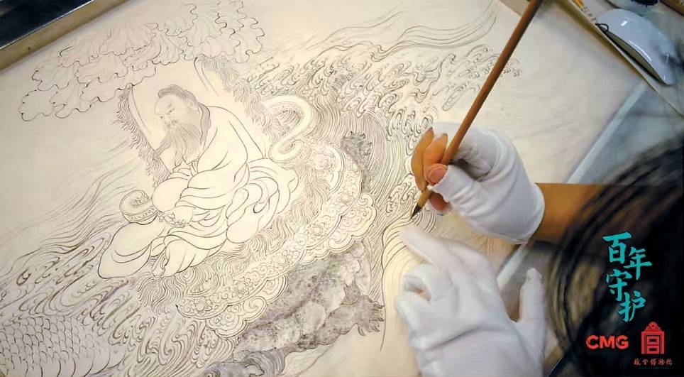 摹画师徐亚男正在摹仿《元东谈主九歌图》